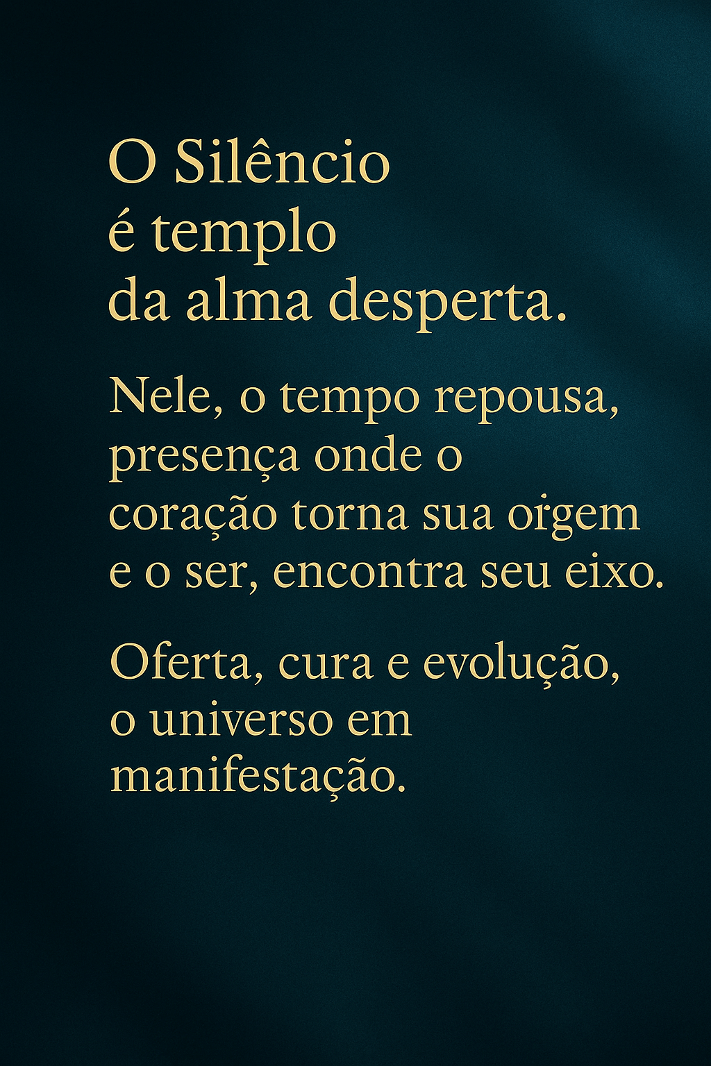 O poema “O Silêncio é templo da alma desperta” nasce dessa experiência — o retorno ao centro. Cada verso é um passo de recolhimento, expansão e reencontro.