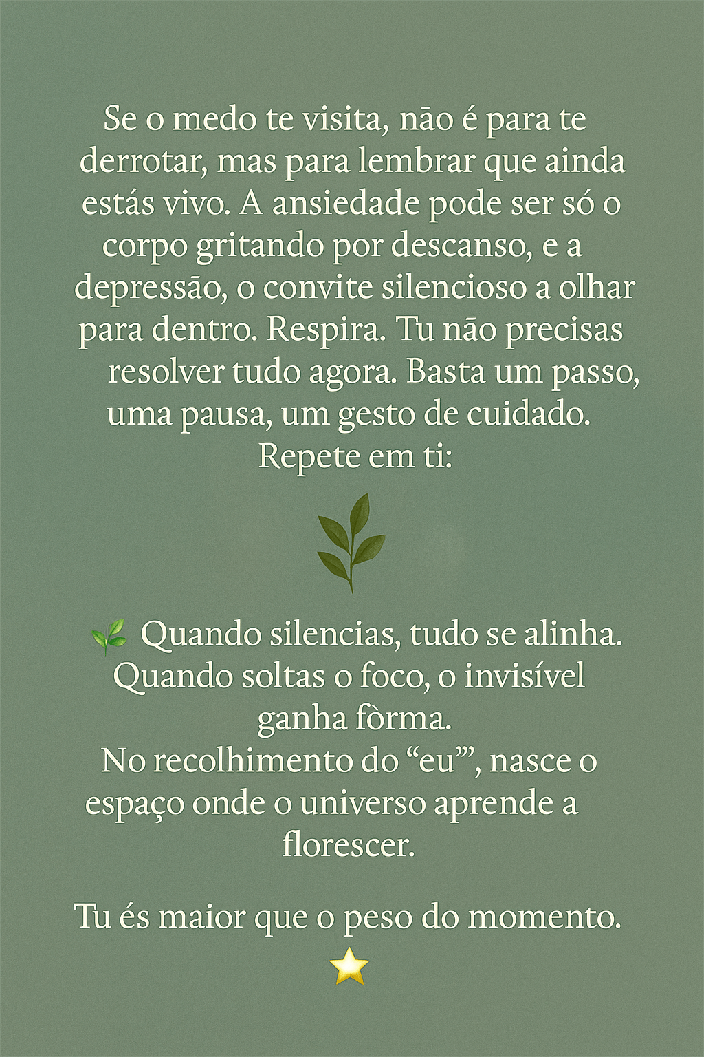 Uma leitura poética e filosófica sobre o silêncio como força criadora e restauradora. “O silêncio é templo da alma desperta” revela o movimento interior do ser — onde o tempo repousa, o coração retorna à origem e o universo se manifesta em presença.